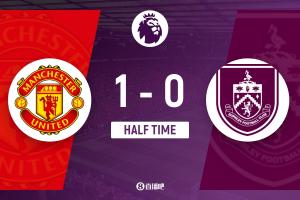 半場結束,曼聯暫1-0伯恩利。