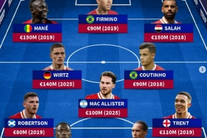馬內(2019年,1.5億歐)、菲爾米諾(2019年,9000萬歐)、薩拉赫(2018年,1.5億歐)