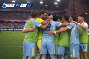體育資訊09月01日訊 尤文vs熱那亞第73分鐘,弗拉霍維奇頭球破門,全隊簇擁著他慶祝!此時比分變為尤文1-0!
