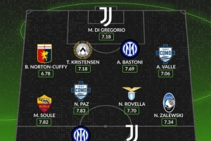 后衛:諾頓-庫菲(熱那亞,6.78分)、T-克里斯滕森(烏迪內斯,7.18分)、巴斯托尼(國米,7.69分)、亞歷克斯-瓦萊(科莫,7.06分)