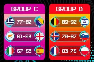 體育資訊09月03日訊 男籃歐錦賽當(dāng)?shù)貢r(shí)間9月2日的6場(chǎng)小組賽全部結(jié)束,詳細(xì)賽果如下:
