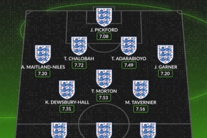 whoscored英格蘭球員本賽季聯賽評分最佳陣: