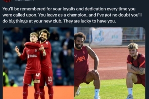 薩拉赫寫道:“你的忠誠(chéng)和每一次上場(chǎng)所表現(xiàn)出來(lái)的投入將會(huì)被銘記,你作為一個(gè)冠軍離開,我毫不懷疑你會(huì)在新東家成就偉大事業(yè),擁有你是他們的幸運(yùn)。”