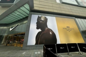 據成都當?shù)鼐W友爆料,萬象城耐克門店周邊已經布置了詹姆斯中國行的巨幅宣傳海報。