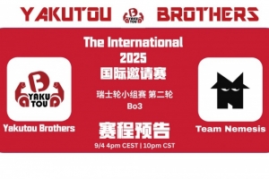 體育資訊9月4日訊 Ti14小組賽首日瑞士輪第二輪0-1組,Yakutou Brothers對(duì)上Nomesis。