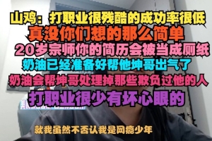 shanji:打職業(yè)很殘酷的成功率很低,真沒(méi)你們想的那么簡(jiǎn)單,20宗師你的簡(jiǎn)歷會(huì)被當(dāng)成廁紙,奶油已經(jīng)準(zhǔn)備看幫他坤哥出氣了,奶油會(huì)幫坤哥處理掉那些欺負(fù)過(guò)他的人