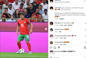 迪亞斯此役為摩洛哥首發(fā)出戰(zhàn),他在社交媒體上曬出比賽照片,配文:“為摩洛哥晉級世界杯感到無比欣喜,多么美妙的感覺!感謝大家的支持。”