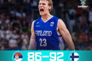 體育資訊9月7日訊 今日男籃歐錦賽1/8決賽,芬蘭92-86戰勝塞爾維亞。