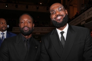 詹姆斯和韋德作為“救贖之隊”成員一同入選。媒體GQ Sports曬出詹姆斯和韋德在名人堂現(xiàn)場的合影。