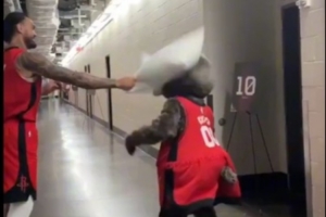火箭熊官方推特曬出自己與亞當斯“互毆”視頻歡迎后者回歸,并配文:“歡迎回來@亞當斯,不過我們需要再打一場??!”