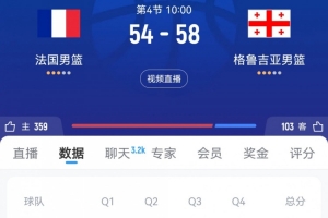 體育資訊9月7日訊 男籃歐錦賽1/8決賽,格魯吉亞男籃三節打完58-54領先法國男籃。