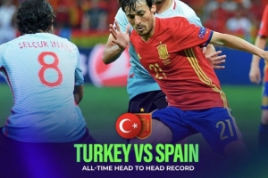 西班牙在與土耳其的交手中取得6勝4平1負的戰績,唯一一次失利是71年前的1954年,西班牙在世預賽0-1不敵土耳其。