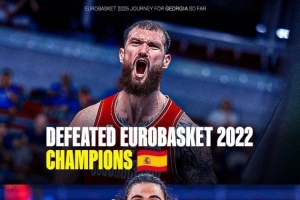 如此一來,格魯吉亞本屆歐錦賽已經先后擊敗上屆歐錦賽的冠軍和亞軍。小組賽格魯吉亞83比69擊敗西班牙,這場比賽也讓他們在相互交手戰績上占優,最終他們和西班牙都是2勝3負,憑借交手戰績優勢,他們拿到小組第4出線,西班牙則小組出局。