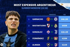 今夏阿根廷球員轉會費榜:歐元