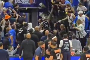值得一提的是,考辛斯在被驅(qū)逐前還與場邊球迷有過沖突。球迷比“哭哭”表情嘲諷考辛斯,考辛斯直接狂抓下體還擊,隨即升級為肢體沖突,好在最終被隊友攔住。
