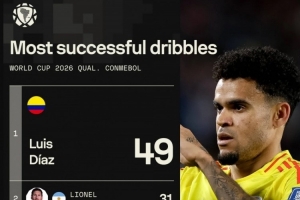 體育資訊9月11日訊 南美世預賽戰罷,Sofascore統計了球員在本屆世預賽中的成功過人次數,并列出榜單,迪亞斯49次居首,梅西31次第二。