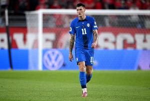 9月國際比賽日兩場(chǎng)比賽,斯洛文尼亞分別2-2戰(zhàn)平瑞典、0-3不敵瑞士,舍什科打滿180分鐘,但兩場(chǎng)比賽中僅1次射正。
