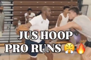 視頻中,保羅、斯庫特-亨德森、特倫斯-曼恩、扎伊爾-威廉姆斯、加爾扎、小喬丹等球員分兩隊進行對抗。