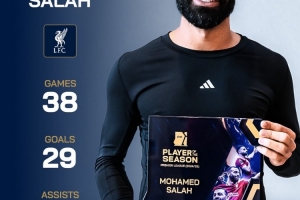 薩拉赫在上賽季為利物浦出戰(zhàn)的38場英超比賽中打進29粒進球,并送出18次助攻。