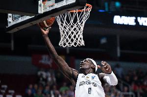上半場,德國男籃球員邦加出戰(zhàn)13分鐘3投2中,三分2中1拿到5分1籃板1助攻,正負值+14半場最高。