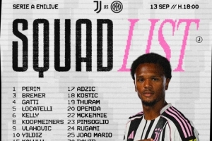 體育資訊9月13日訊 北京時(shí)間明天凌晨0點(diǎn),尤文將在意甲第三輪比賽中主場(chǎng)對(duì)陣國(guó)米,尤文公布了此役的球員名單。