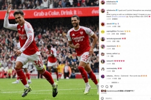 梅里諾賽后也在個人社媒曬出與蘇維門迪慶祝的照片,配文寫道:“3粒進球,拿下3分,現(xiàn)場氛圍太棒了!我們的中場球員最近都怎么了?!祝賀蘇維門迪梅開二度!下一站畢爾巴鄂,加油!”