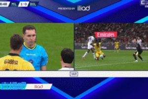 看查看完VAR后,主裁馬泰奧-馬爾塞納羅對現(xiàn)場播報:“經(jīng)審查,博洛尼亞8號球員未構(gòu)成犯規(guī)。裁決:不判罰點球。”