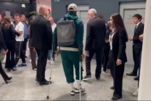 體育資訊9月15日訊 在米蘭1-0擊敗博洛尼亞后,傷退的邁尼昂被拍到拄拐離開(kāi)球場(chǎng)。
