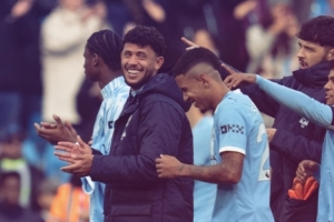此役薩維尼奧為曼城替補(bǔ)出場,但他對自己在場上的表現(xiàn)似乎并不滿意。