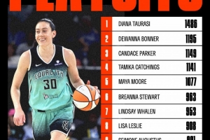在比賽的上半場,斯圖爾特超越了林賽-惠倫,以963分升至 WNBA 季后賽歷史得分榜第6位 。