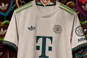 這款新球衣靈感來源于年初慶祝俱樂部成立125周年的紀念球衣,融合了巴伐利亞的價值觀和現代優雅:高貴的米白色、綠色刺繡袖口以及類似于125周年紀念球衣的結構,使其成為傳統與獨特性的完美結合,是所有拜仁球迷的真正宣言。