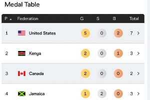 2、肯尼亞,2金0銀1銅,3塊獎(jiǎng)牌