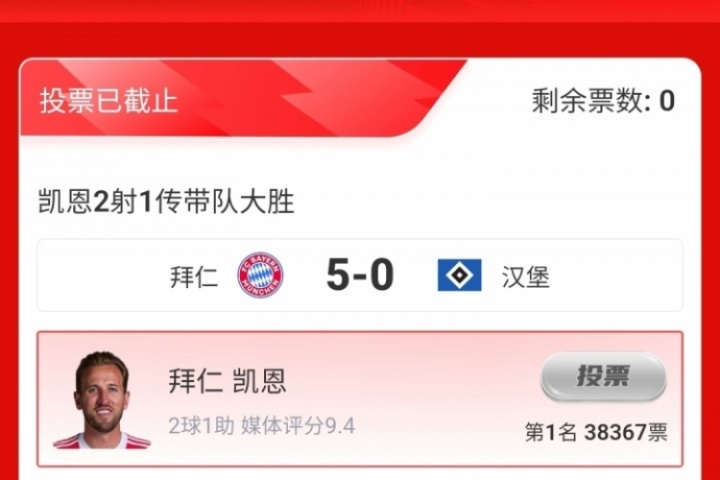 第三輪評選結果結出爐,凱恩2射1傳,幫助拜仁5-0大勝漢堡,獲得吧友近4萬票的支持,擊敗格里馬爾多當選 【體育資訊X小紅書德甲第3輪最佳球員】!