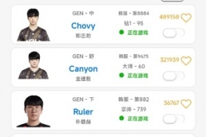 根據韓服排位統計小程序顯示,GEN全員登上韓服排位打Rank,暫時停止了斗魂競技。