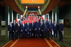 體育資訊9月16日訊 土耳其總統埃爾多安在總統府會見了獲得男籃歐錦賽銀牌的土耳其男籃國家隊,以及籃協相關人員。