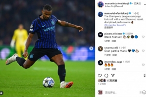 阿坎吉社媒曬出比賽照片,并寫(xiě)道:“以一場(chǎng)勝利開(kāi)啟歐冠征程,實(shí)至名歸的結(jié)果,紀(jì)律嚴(yán)明的表現(xiàn)。”