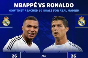 德轉曬圖:達成皇馬50球時,姆巴佩與C羅數據