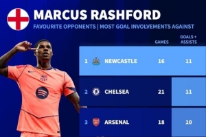 體育資訊9月19日訊 巴薩在本輪歐冠焦點戰2-1力克紐卡斯爾,拉什福德雙響建功。數據統計顯示,紐卡也是拉什福德生涯進球最多的對手之一。