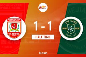 上半場補時4分鐘。半場戰罷,長春亞泰1-1浙江隊。