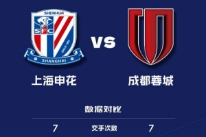 中超聯賽官方曬出兩隊的交手記錄,雙方歷史共對陣7次,成都蓉城4勝2平1負占據明顯上風。