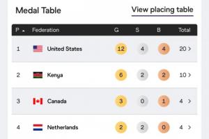 2、肯尼亞,6金2銀2銅,10塊獎牌