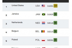 牙買加3分19秒25創賽季最佳獲得銀牌,荷蘭3分20秒18同樣創賽季最佳獲得銅牌。