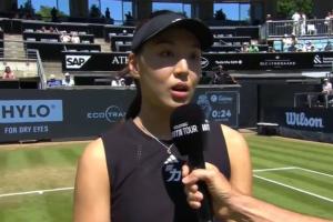 體育資訊06月20日訊 WTA500柏林站1/4決賽,王欣瑜首盤6-1速勝后,巴多薩退賽!王欣瑜晉級四強!賽后王欣瑜接受采訪談到了本場比賽。