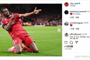 此役伊薩克斬獲紅軍生涯首球,他在社媒曬出比賽照片,慶祝球隊取勝+攻入處子球。