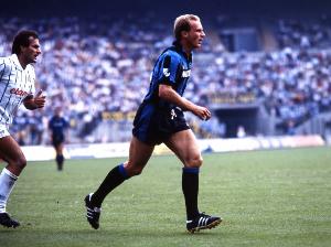 魯梅尼格今日迎來70歲生日。1984年夏他從拜仁轉(zhuǎn)會(huì)至國米,三個(gè)賽季(1984年-1987年)中在聯(lián)賽、杯賽和歐洲賽事共出場(chǎng)107次,攻入42球。國米球迷銘記他的身體素質(zhì)、強(qiáng)大力量、領(lǐng)袖氣質(zhì)以及那些難忘的進(jìn)球:從聯(lián)賽首秀對(duì)陣尤文的破門,到德比戰(zhàn)的精彩進(jìn)球,再到對(duì)陣都靈時(shí)那記半轉(zhuǎn)身凌空抽射,以及歐洲杯賽中的諸多精彩破門。身披國米戰(zhàn)袍期間,魯梅尼格展現(xiàn)了全部的天賦。在其輝煌職業(yè)生涯中,他曾兩獲金球獎(jiǎng),這更是對(duì)其非凡實(shí)力的進(jìn)一步認(rèn)可。