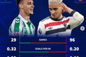 體育資訊9月25日訊 在歐聯杯貝蒂斯2-2戰平諾丁漢森林的比賽中,安東尼傳射建功。德轉也對比了安東尼在效力曼聯以及貝蒂斯期間各項賽事數據情況,具體如下: