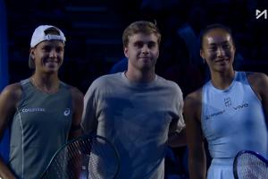 體育資訊09月27日訊 今晚中網第二輪,鄭欽文迎復出首戰,瑞典乒乓球球員莫雷加德賽前為選手挑邊,隨后三人合影。