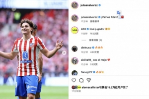 體育資訊9月28日訊 馬競5-2擊敗皇馬,賽后發(fā)揮出色的阿爾瓦雷斯發(fā)文慶祝勝利。