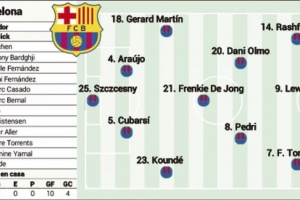 體育資訊9月28日訊 《阿斯報》發文,預測了巴薩的首發陣容。