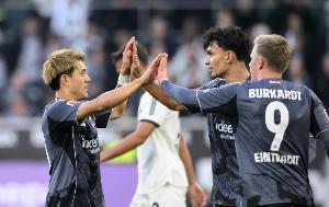 體育資訊09月28日訊 德甲第5輪,法蘭克福6-4擊敗門(mén)興,本場(chǎng)比賽27歲日本邊鋒堂安律助攻雙響,幫助球隊(duì)連入6球,一度6-0領(lǐng)先。